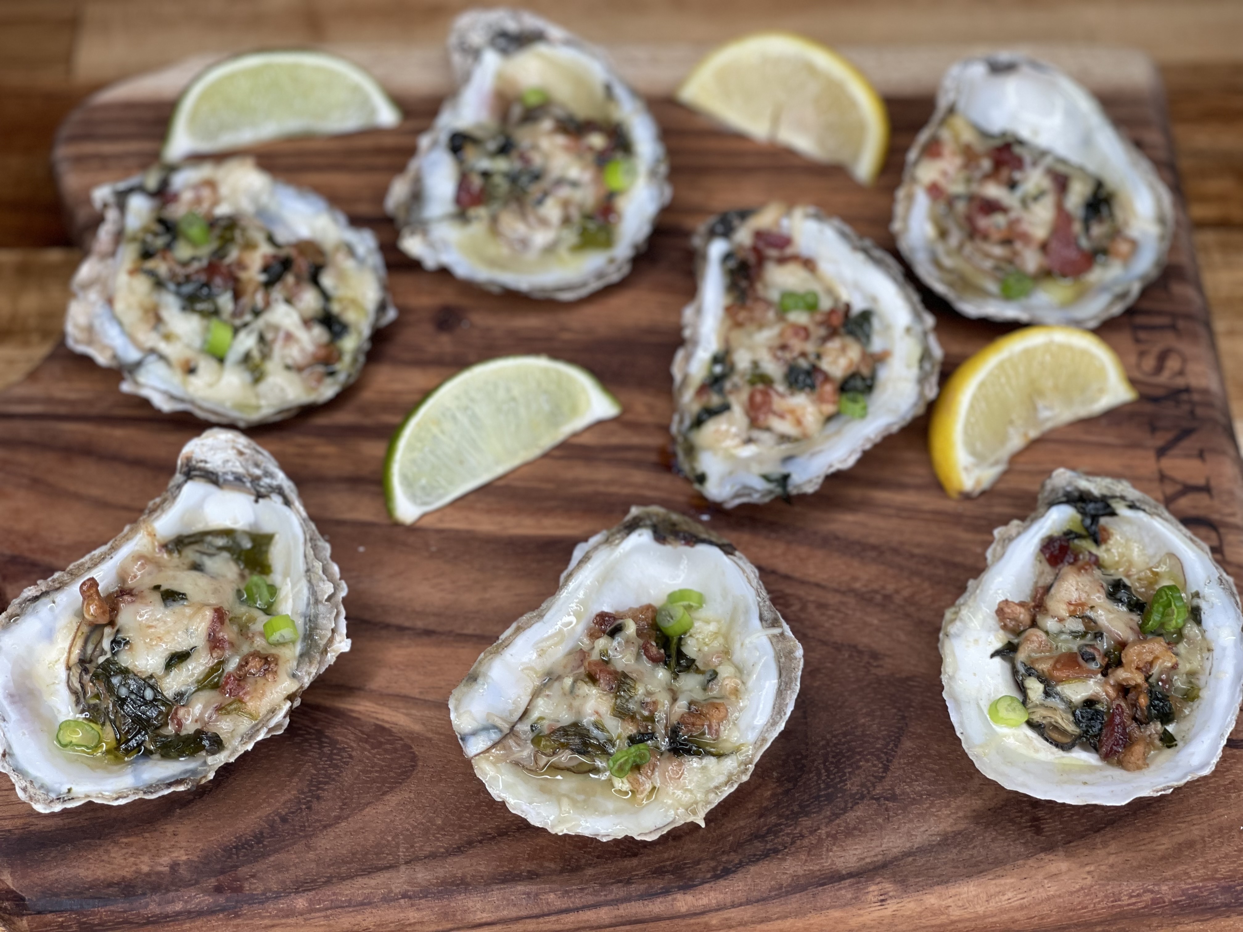 Spoon 1 teaspoon of the spinach mixture on each oyster followed by a spoonful of the bread crumb mixture. Arrange the oysters and bake in oven for 10 to 15 minutes until golden.
